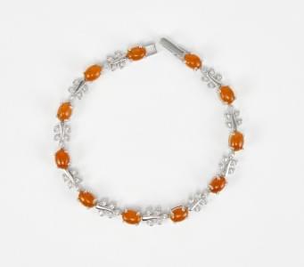 3297. 7214*Bracelet serti d'opales de feu taille cabochon alternées de...
