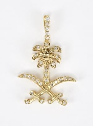 3299. Pendentif serti de diamant à motif de palmier surmontant deux sa...