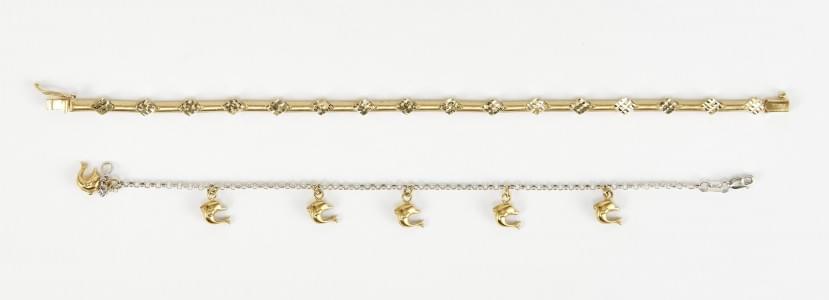 3302. Lot de deux bracelets, l'un retenant des pendeloques dauphins de...