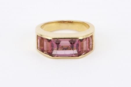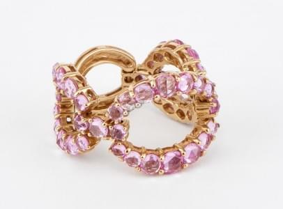 3315. Bague souple à maille ovale ajourée sertie de saphirs roses