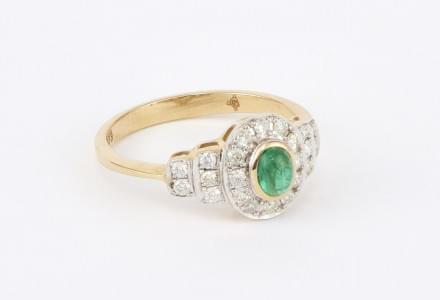 3307. 7102*Bague centrée d'une émeraude taille cabochon entourée de di...