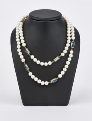3310. 7156*Sautoir de perles ponctué de motifs sertis de topazes bleue...
