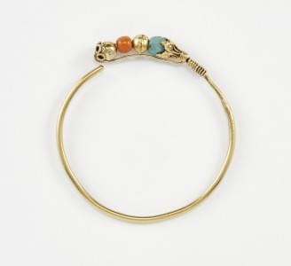 3311. Bracelet jonc ouvert à un fil à décor de granulation et retenant...