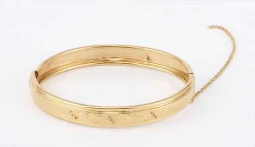 3312. Bracelet jonc ouvrant ciselé à décor feuillagé