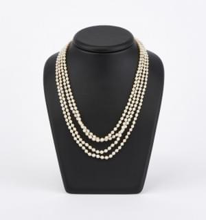 3313. Collier multi-rangs de perles terminé par un fermoir serti de ro...