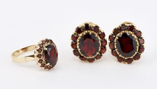 3318. Clips d'oreilles fleur sertis de grenats taille ovale et brillan...