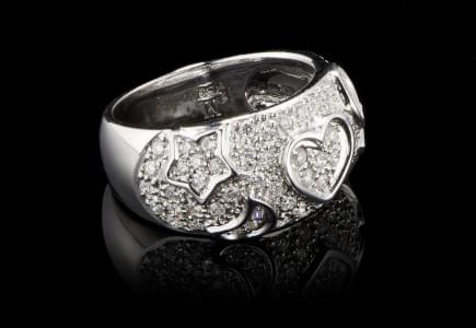 3320. Bague à motif de cœur, de lunes et d'étoiles pavés de diamants