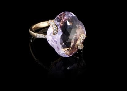 3321. Bague sertie d'une améthyste taille fantaisie facettée rehaussée...