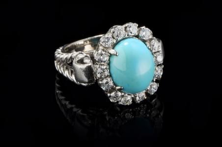 3325. Bague sertie probablement d'une turquoise taille cabochon entour...