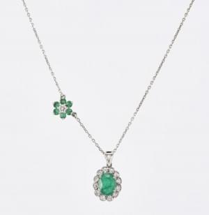 3328. Collier retenant un motif de fleur sertie d'émeraudes et d'un di...