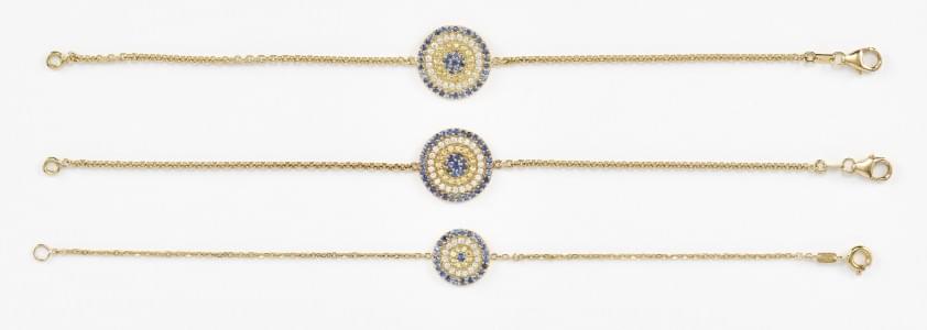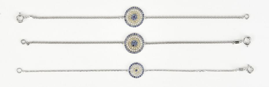 3329. Lot de trois bracelets retenant chacun un motif rond pavé de dia...