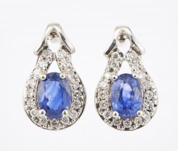 3334. 7121*Clous d'oreilles sertis de saphirs taille ovale entourés de...