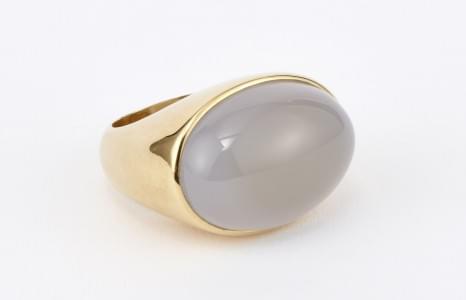 3335. Bague sertie d'une agate bleue taille cabochon ovale (env. 28 ct...