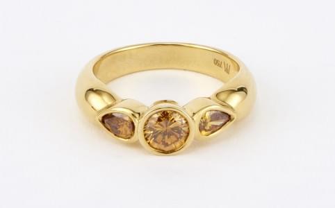 3336. Bague sertie de trois diamants cognac taille brillant et taille...
