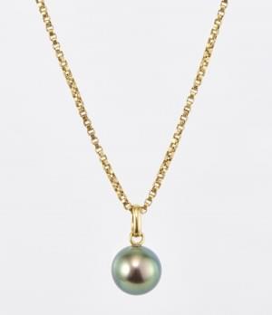 3339. Chaîne à maille vénitienne retenant une perle de Tahiti en pende...