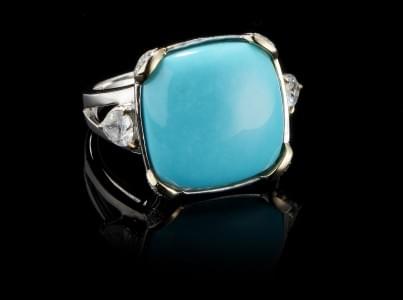 3347. 5347*Bague sertie probablement d'une turquoise épaulée de saphir...