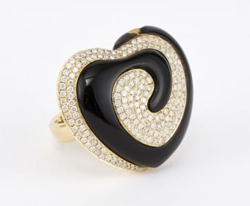 3352. Bague cœur pavée de diamants et sertie d'émail noir
