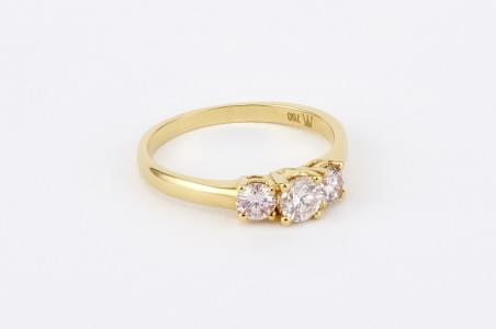 3353. Bague sertie de trois diamants roses (total env. 0,6 ct)