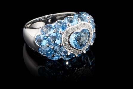 3354. Bague centrée d'une topaze bleue taille cœur facettée entourée d...