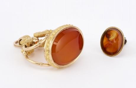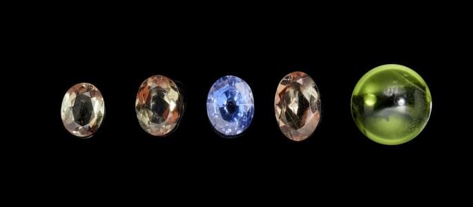 Dont un saphir taille ovale (1,8 ct), un péridot taille cabochon...