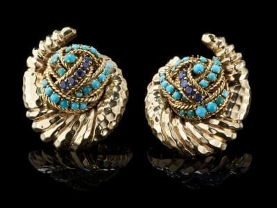 3358. Boucles d'oreilles serties de saphirs et de turquoises