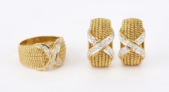 3360. Ensemble d'une bague et de boucles d'oreilles tressées à croisil...