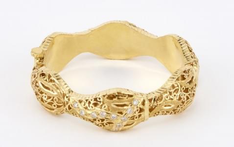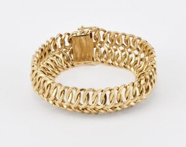 3350. Bracelet jonc ajouré à trois fils trois ors