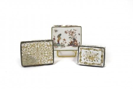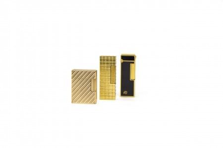 Métal doré, H 6 et 4,5 cm. On joint un briquet laqué noir, H 6,5...
