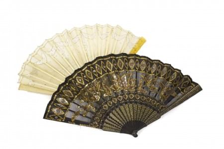 A décor de drapés et motifs floraux, bois, corne et tissu, H 21...