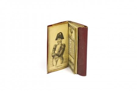 Etui en cuir rouge gauffré de rinceaux et médaillons néoclassiqu...