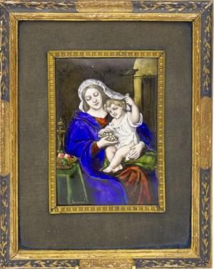 3392. La vierge à la grappe, plaque Limoges, XIXe s