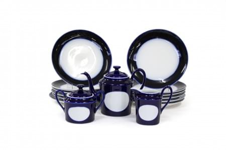 3422. Service à thé à décor bleu nuit et médaillon blanc en réserves