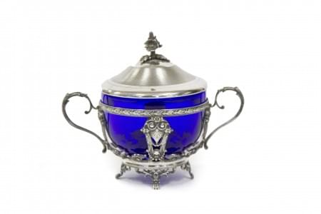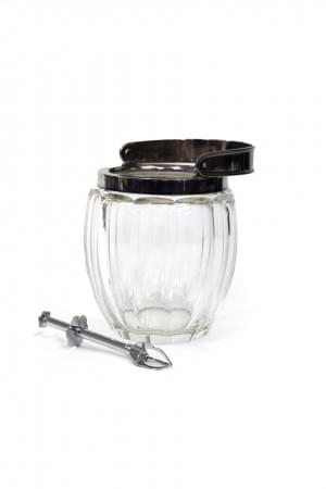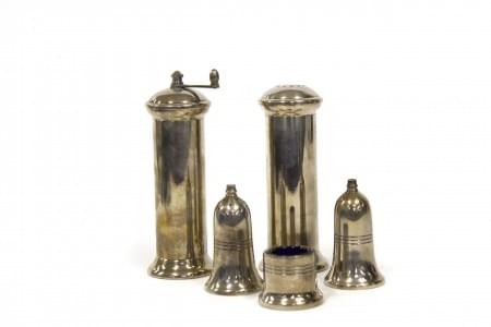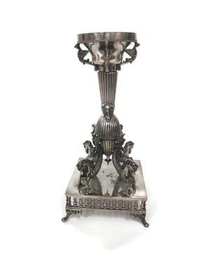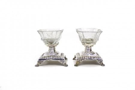 Métal argenté, argent et verre taillé, H 27 et 9 cm