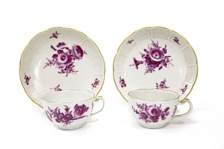 3453. Service à thé pourpre à décor de fleurs en réserves