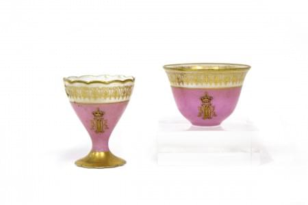 Porcelaine rose et or, H 3 et 5 cm. Provenance: vente des collec...