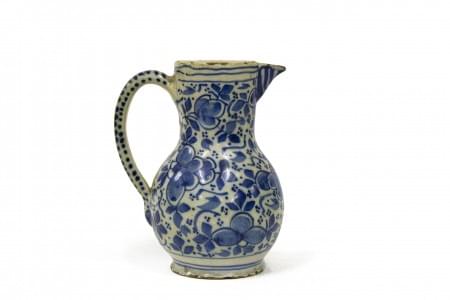 Faïence émaillée polychrome à décor de fleurs, H 15 cm
