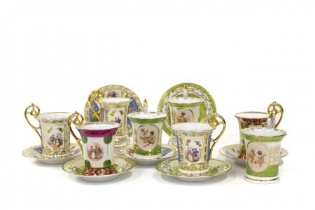 3432. 6 tasses à café à décor de putti et scènes galantes