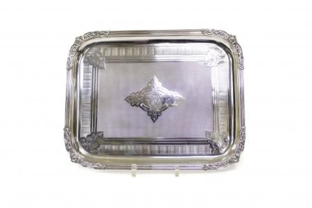 3436. Plateau de service guilloché à motif d'acanthes et médaillon cen...