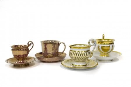 Porcelaine blanche et or, XIXe s, Paris et Allememagne (5p)