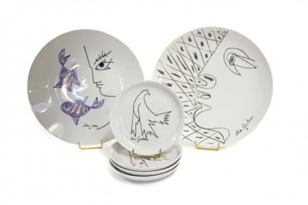 3438. 4 petites et deux grandes assiettes Jean Cocteau, édition Promo-...