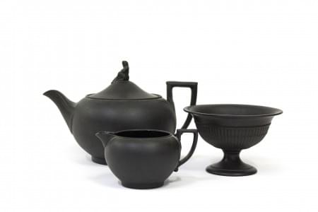 3440. Théière couvert à fretel en forme de figure drapée, une coupe su...