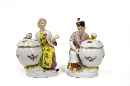 3449. Paire de bonbonnières flanquées d'un jeune homme et d'une jeune...