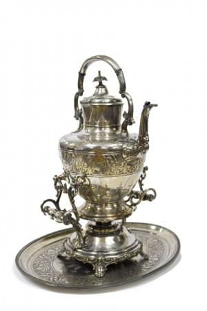 3460. Samovar et son réchaud quadripode et plateau ovale
