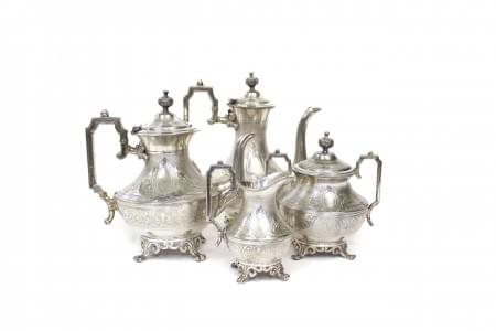Métal argenté comprenant: théière, cafetière, sucrier et pot à l...