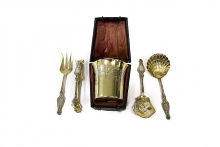 France, vermeil, 60 g. On joint un ensemble de 4 couverts à bonb...