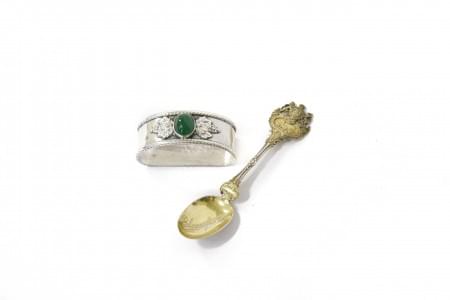 Londres 1902-1903, vermeil et lien de serviette à cabochon vert,...