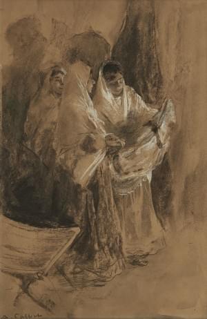 Deux études de paysannes, fusains sur papier, 30x21 et 24x9 cm