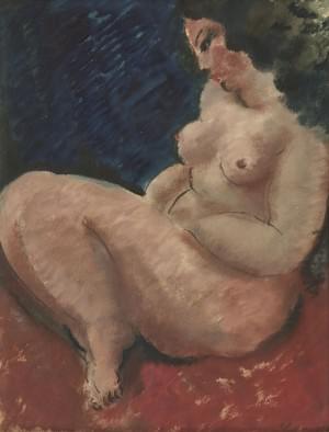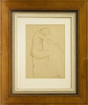 Jeune femme nue, gouache sur carton, signée, cachet de l'atelier...