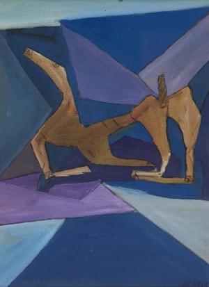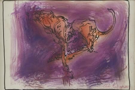 Chien en mouvement, aquarelle et encre de chine sur papier, sign...