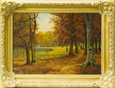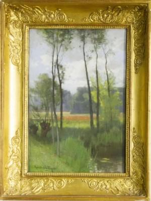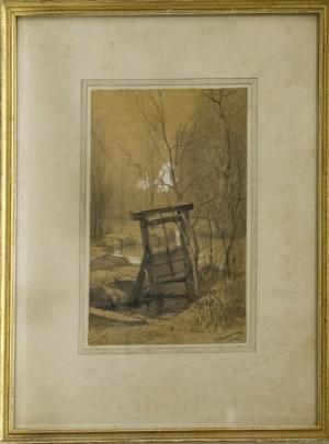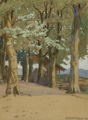 Sous les arbres, gouache et crayon, signé et daté 1904, 41x30 cm